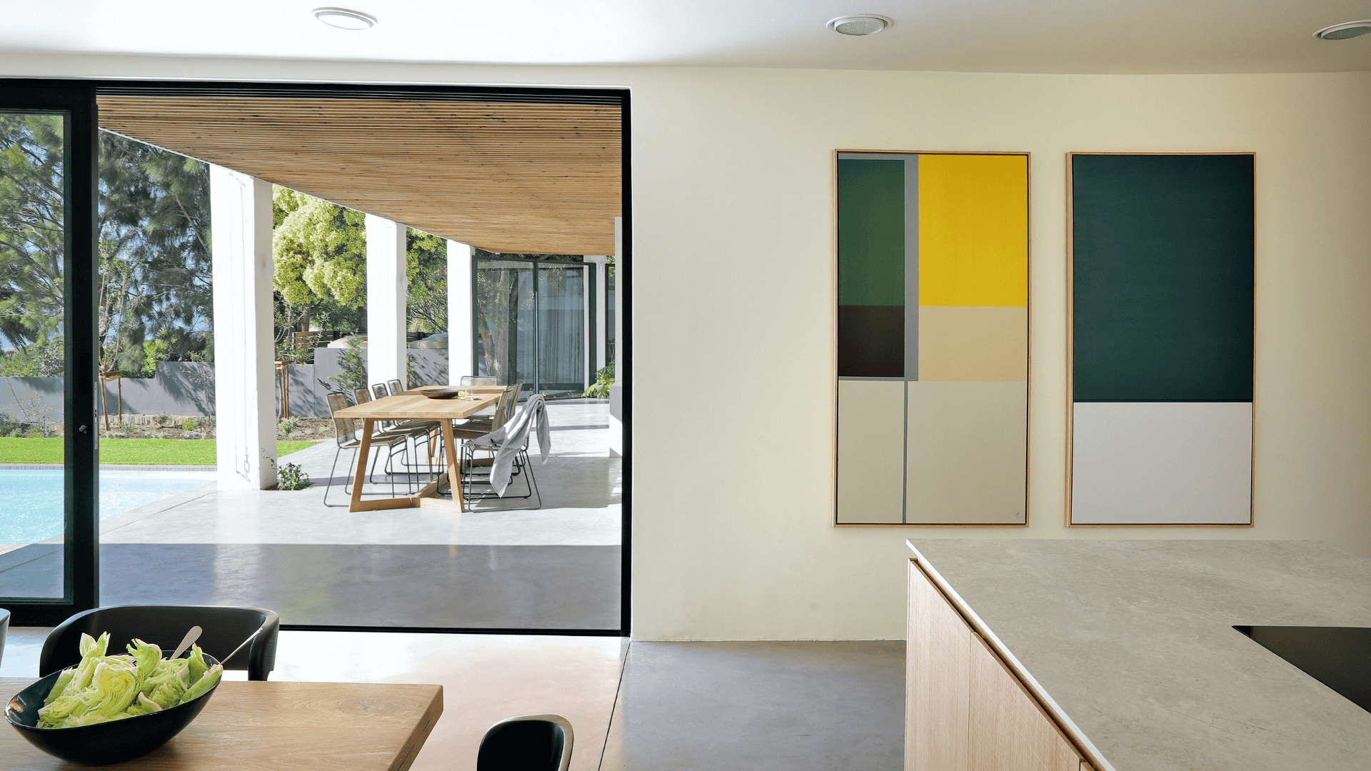 A Brazilian Modernist home reimagined for the Cape coast, Niemeyer is a study in light, form and quiet rhythm. Sculpted from raw concrete, warm timber, and glass, and softened by natural textures and tropical light, the home unfolds slowly; a series of elegant, open volumes where architecture and nature meet in quiet conversation. Floor-to-ceiling glass doors dissolve the boundary between inside and out, drawing the garden, terrace and pool into your daily living experience.